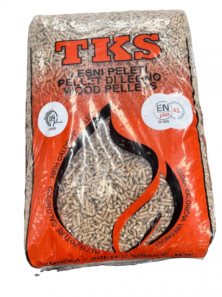- smrekovi peleti A1 v vrečah po 15 kg.